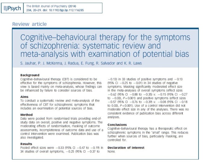 We are invited to conclude that the only reason schizophrenia isn’t being treated with psychotherapy is either lack of resources or some patients’ distaste for formality.